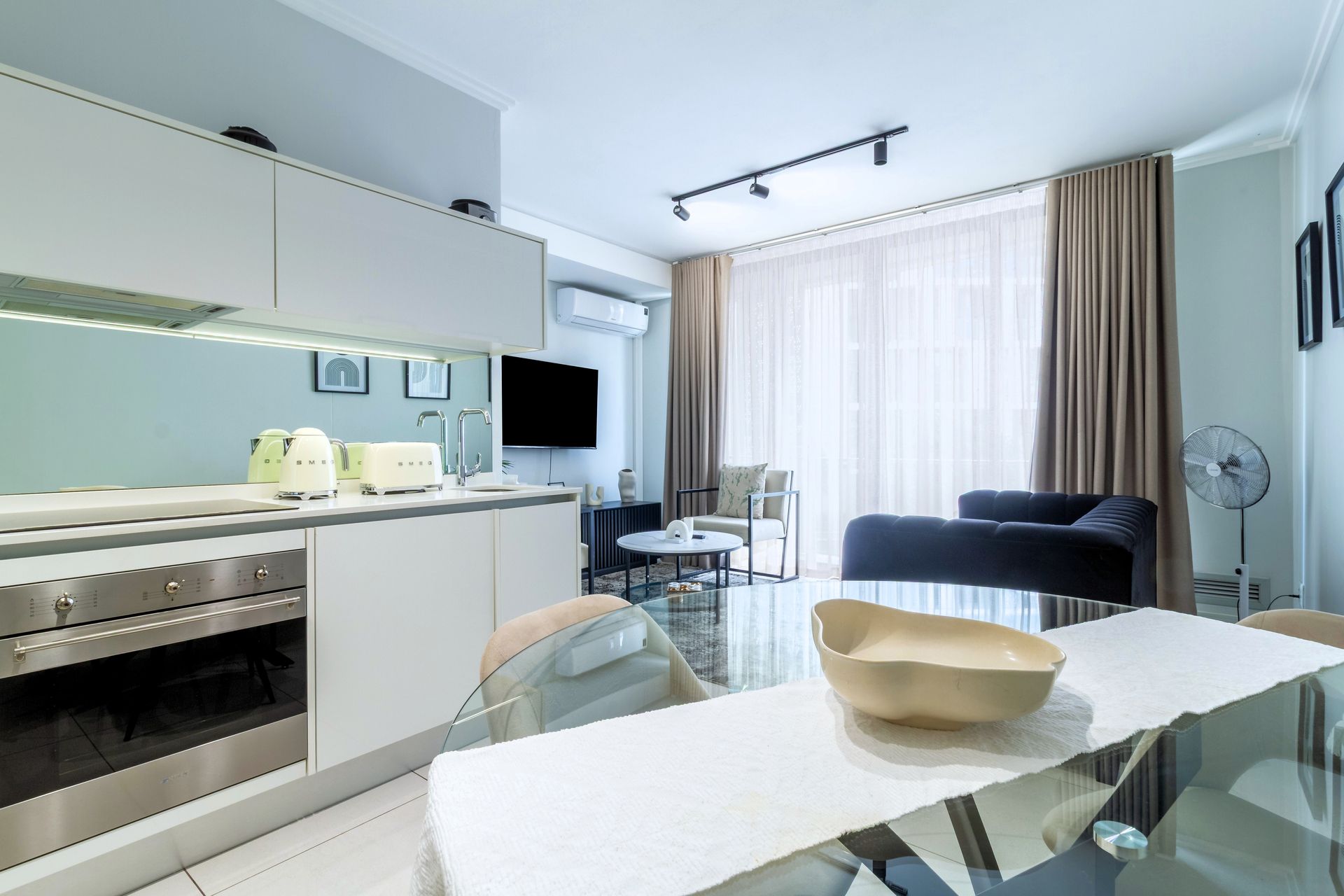 This stylish unit offers an open-plan living space with floor-to-ceiling windows, a fully equipped kitchen, and a private balcony with stunning city views. Perfect for business travellers or couples seeking a comfortable, high-end stay.
