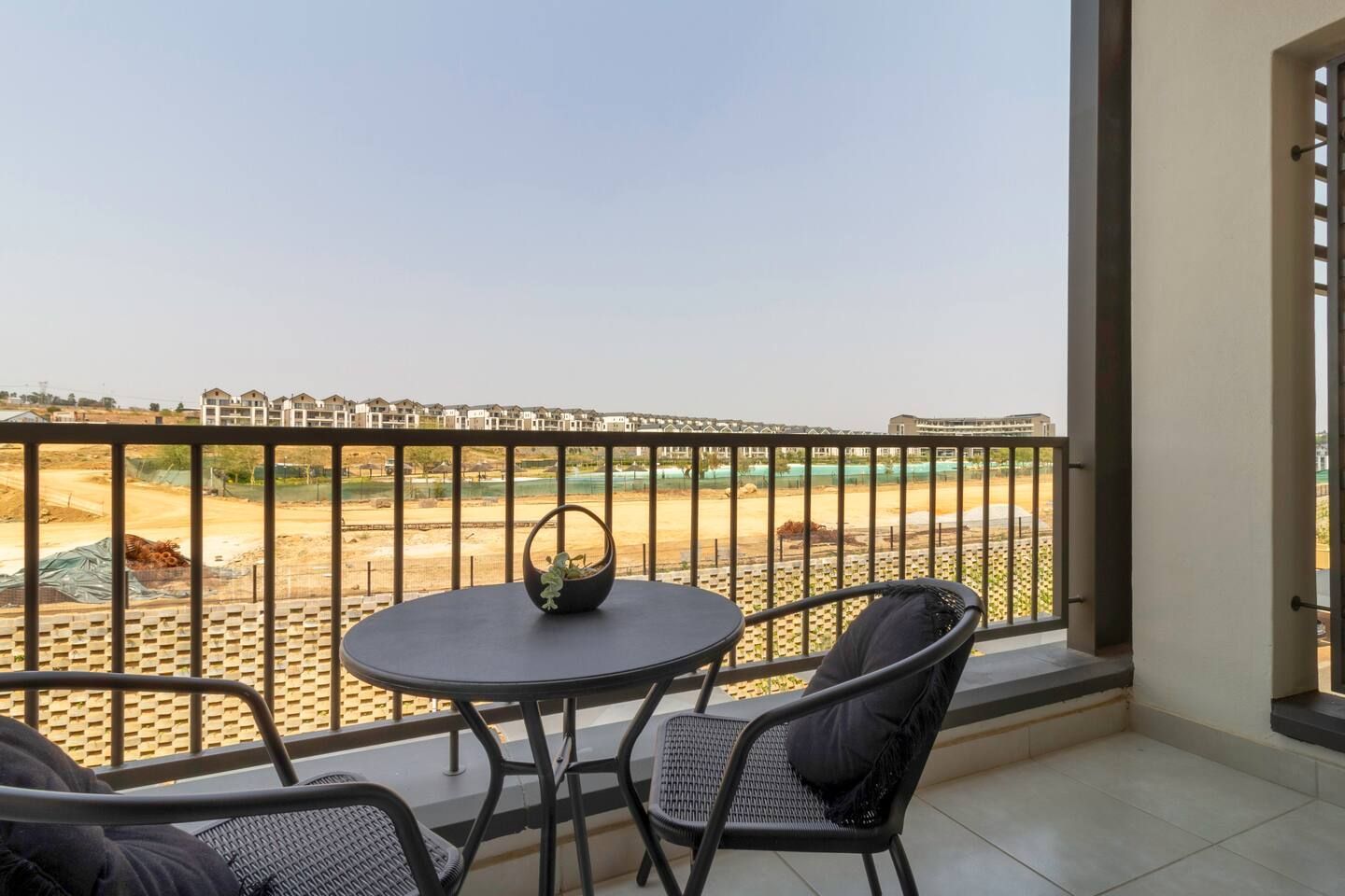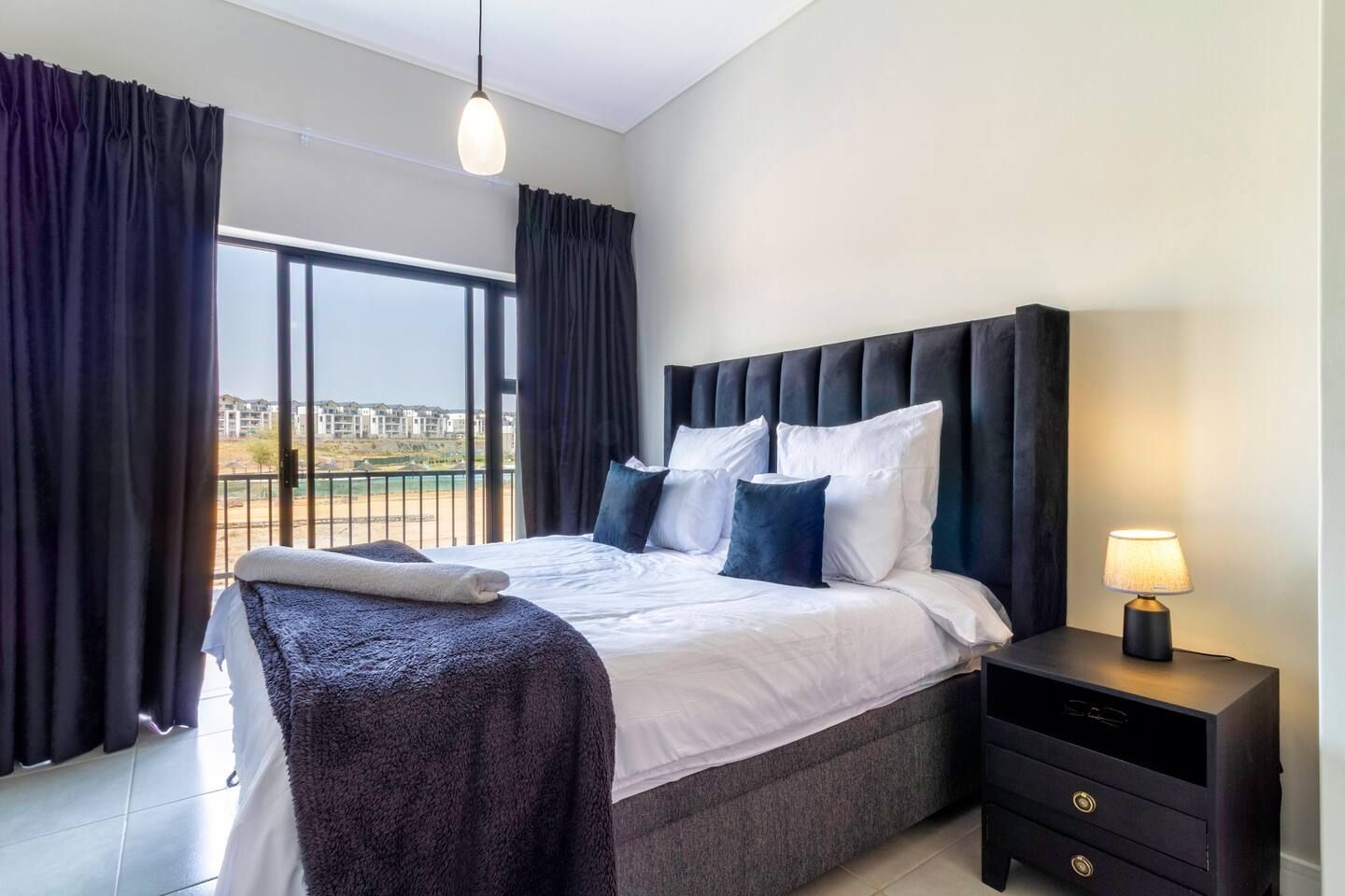 Escape to the Serene Global Lagoon View, a stylish one-bedroom apartment overlooking the breathtaking Munyaka lagoon in Midrand. Designed for both relaxation and convenience, this modern retreat combines sophisticated finishes with resort-style living. Perfect for couples, business travelers, or remote workers, this apartment offers everything you need: a fully equipped kitchen, sleek bathroom, cozy living space, and a private balcony with stunning views of the lagoon.